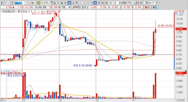 GSI와 대성에너지의 움직임은 시장과 반대로 움직였다.시장이 하락하자, GSI와 대성에너지는 상승했다. 누군가가 헤지의 수단으로 묶어서 매매하는 듯한 느낌이 든다.
